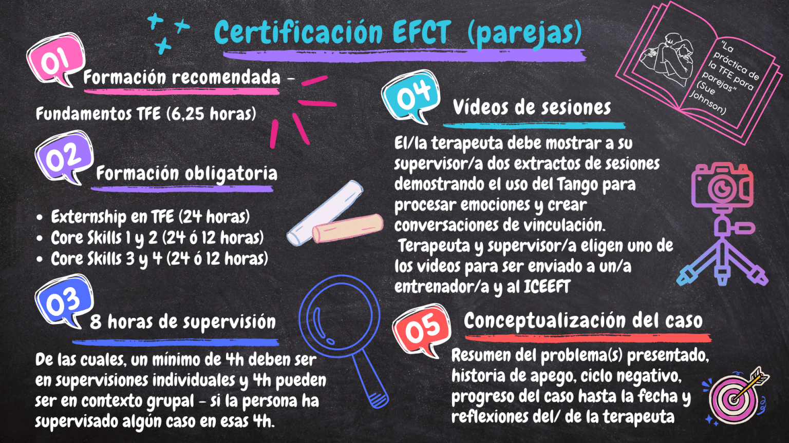 - Haber completado el Externship en Terapia Focalizada en las Emociones (EFCT).
